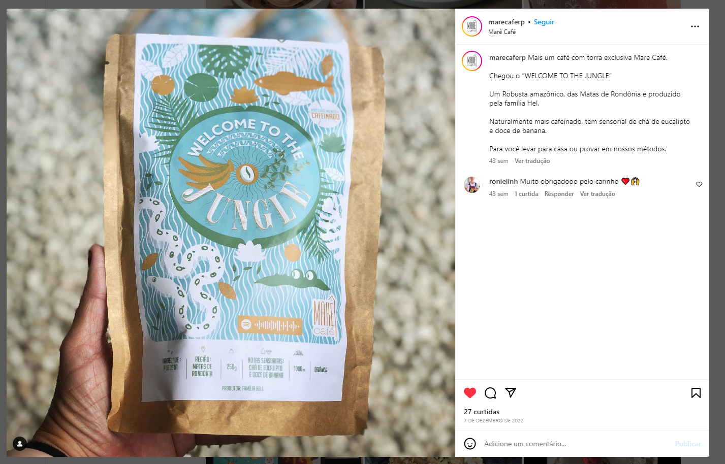 Embalagem de café para o Marê Café inspirada na selva amazônica.